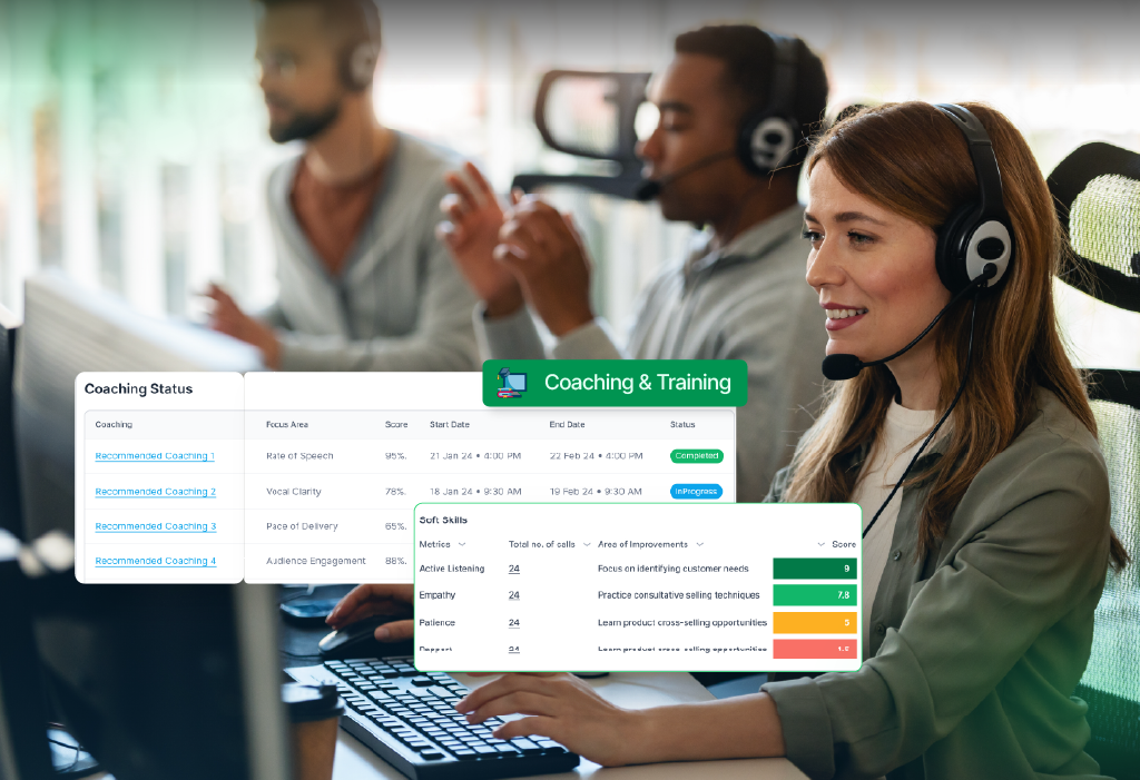 Real-time analytics pinpoint improvement areas, while coaching boosts skill mastery and morale.